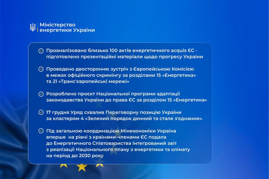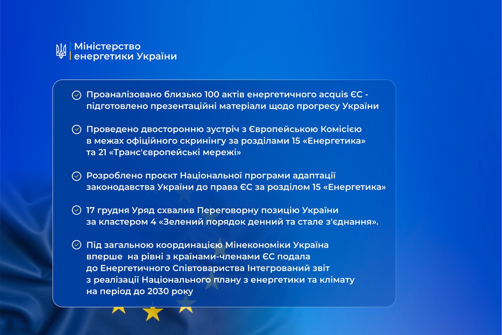At the end of the year, within the framework of the Enlargement Package 2025, the European Commission noted Ukraine’s strong level of preparedness in the energy sector, in particular highlighting progress in: