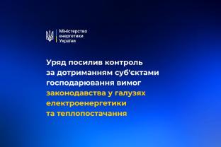 Уряд посилив контроль за дотриманням суб'єктами господарювання вимог законодавства у галузях електроенергетики та теплопостачання