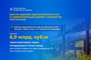 У 2025 році Україна повністю зупинила транзит російського газу через власну ГТС: з 1 січня газотранспортна система України працює в режимі відсутності транзиту російського газу.