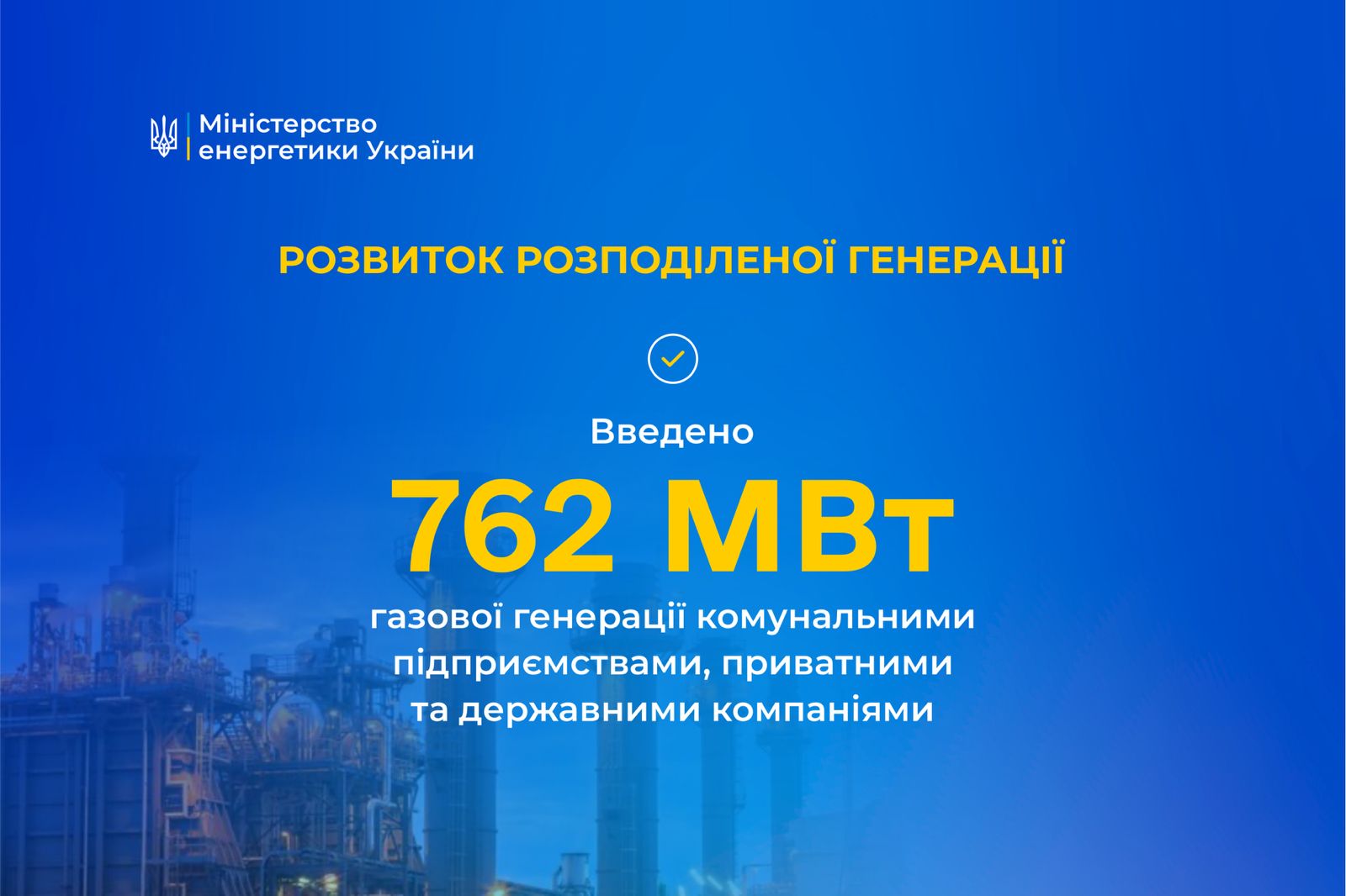 Загалом у 2025 році комунальними підприємствами, приватними та державними компаніями введено 762 МВт нової газової генерації.