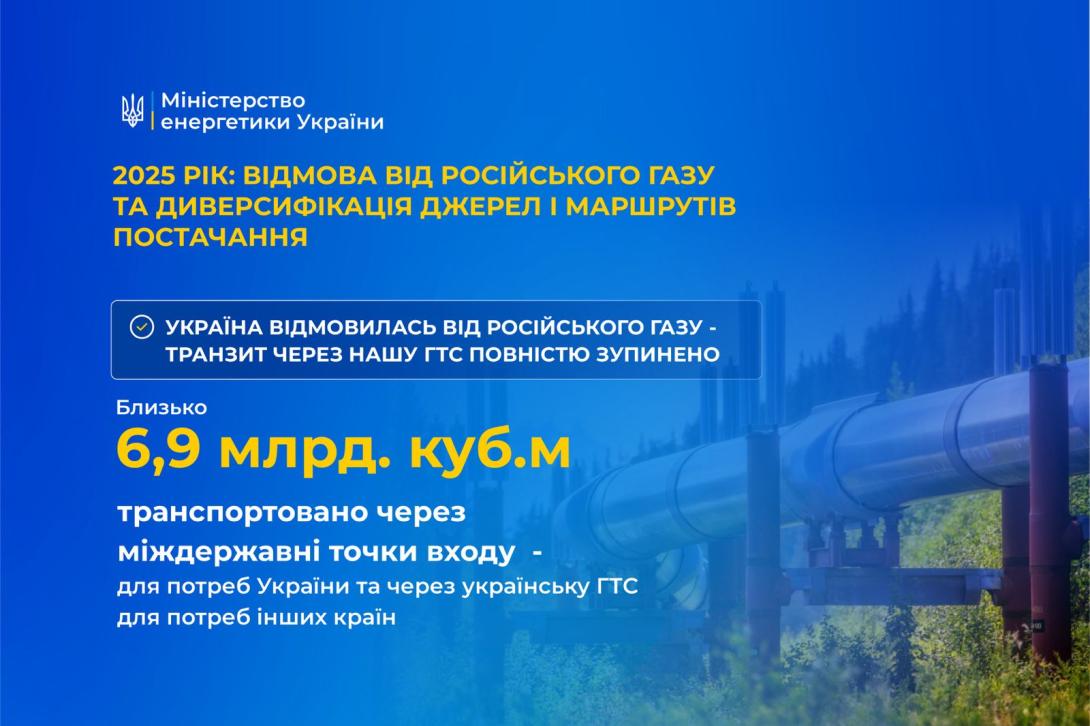 У 2025 році Україна повністю зупинила транзит російського газу через власну ГТС: з 1 січня газотранспортна система України працює в режимі відсутності транзиту російського газу.