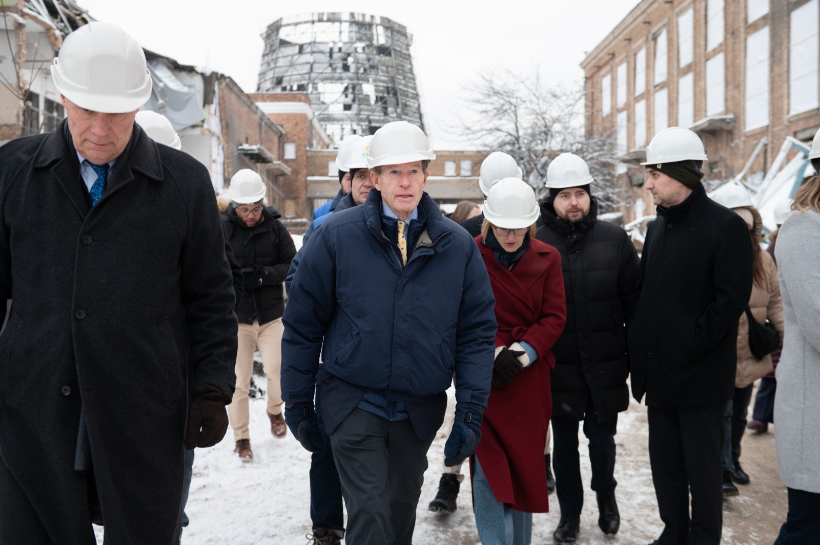Заступник Міністра енергетики України Анатолій Куцевол разом із сенаторами США Річардом Блюменталем та Шелдоном Вайтгаусом відвідали пошкоджену внаслідок російських атак ТЕЦ у Києві.