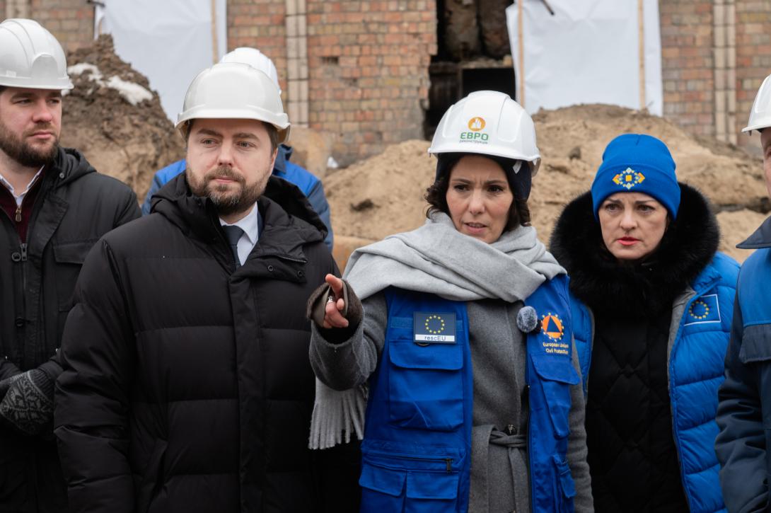 Під час візиту до Києва Комісарка Європейського Союзу з питань рівності Хаджа Лахбіб разом із заступником Міністра енергетики України Анатолієм Куцеволом відвідали пошкоджену російськими атаками Дарницьку ТЕЦ.