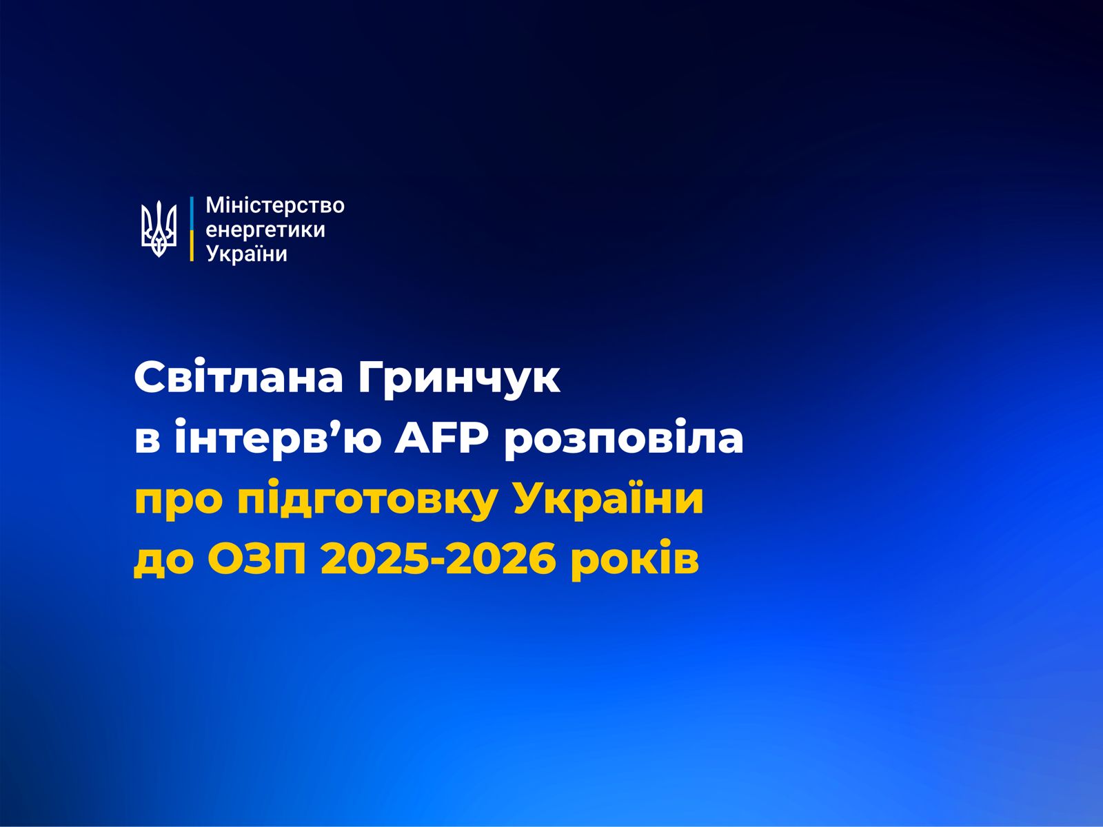 Світлана Гринчук в інтервʼю міжнародному інформаційному агентству AFP розповіла про підготовку України до ОЗП 2025-2026 років.