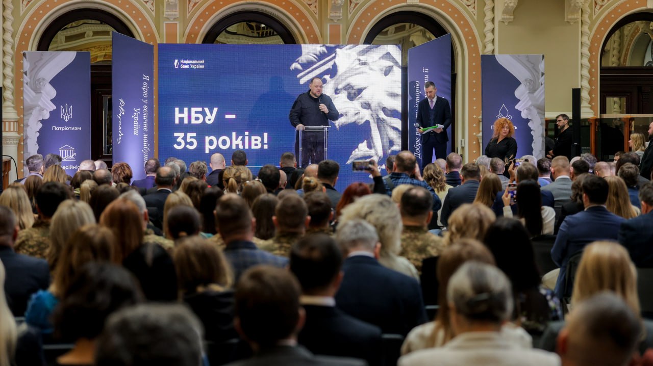 Денис Шмигаль привітав працівників та управлінців НБУ з ювілеєм і побажав кожному члену колективу сил, енергії та оптимізму для професійної ефективної роботи.