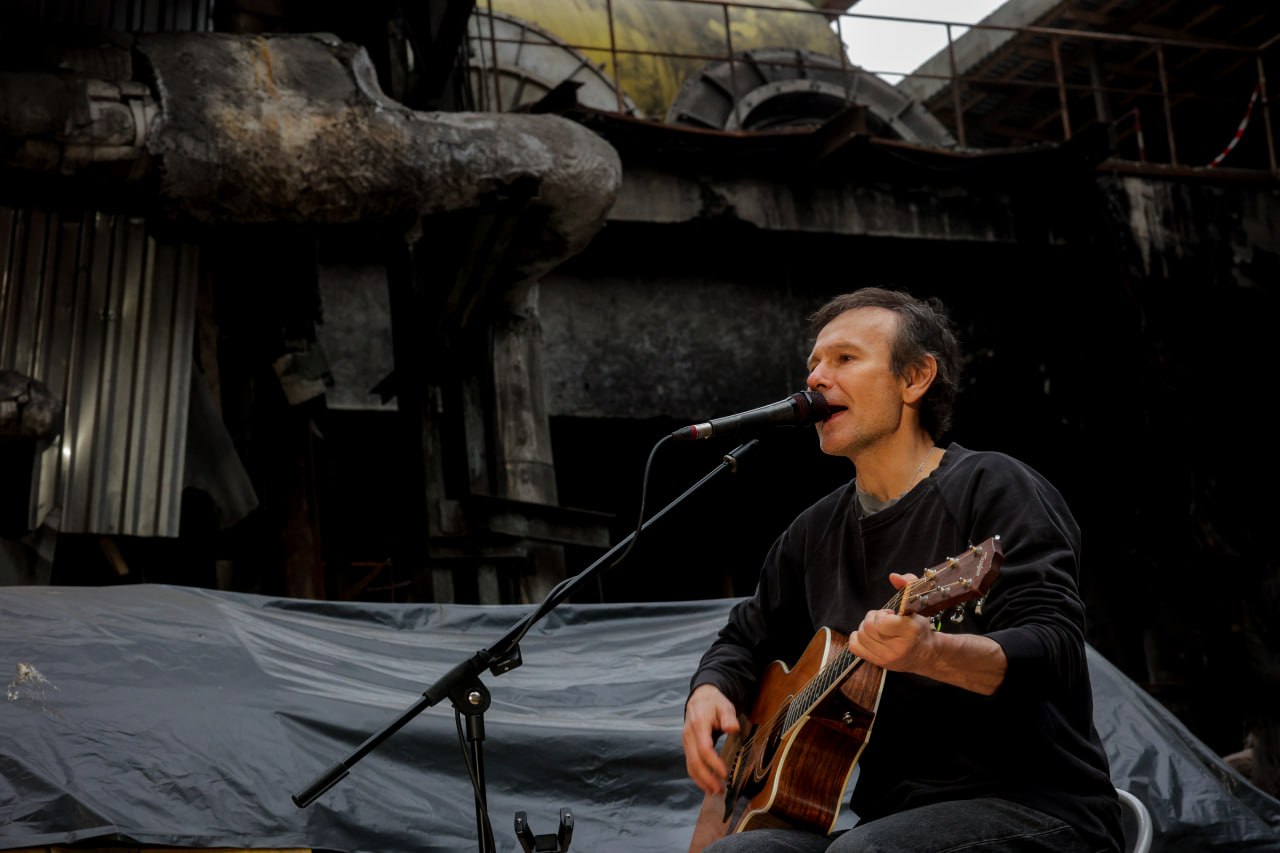 Також на ураженому російською ракетою енергоблоці енергетиків підтримав виступом музикант Святослав Вакарчук.