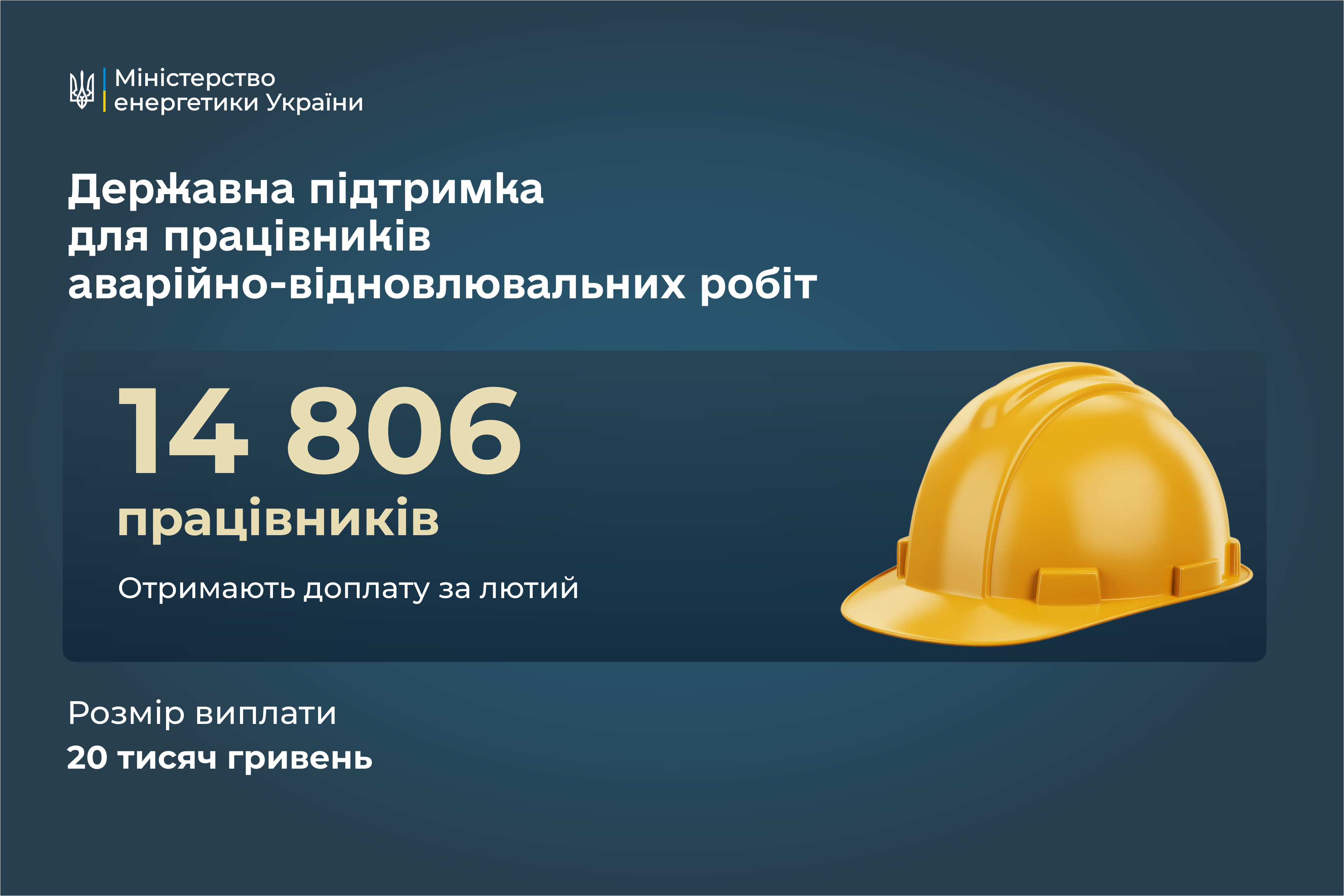 За лютий 2026 року 14 806 працівників подали заяви на отримання доплати за участь в аварійно-відновлювальних роботах після російських обстрілів.