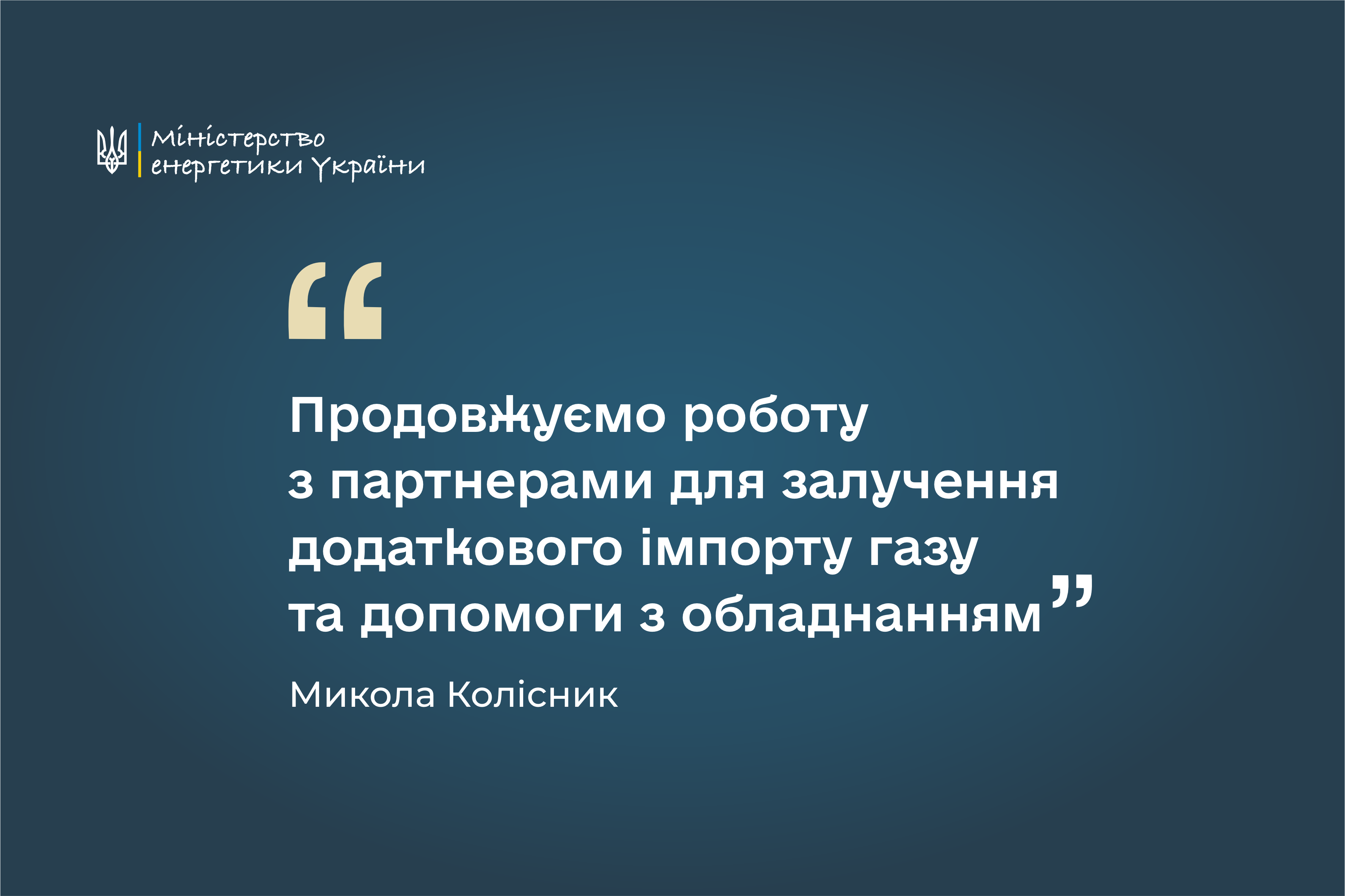 Україна продовжує активно працювати над диверсифікацією маршрутів постачання газу і дякує усім міжнародним партнерам за співпрацю, яка допоможе нам не тільки забезпечити теплом домівки українців протягом цієї зими, але й зміцнити енергетичну безпеку країни. Продовжуємо роботу з партнерами для залучення додаткового імпорту та допомоги з обладнанням для роботи газової системи в умовах ворожих обстрілів. Йдеться, зокрема про компресори, турбіни та обладнання для закачування газу в сховища і його доставки споживачам.