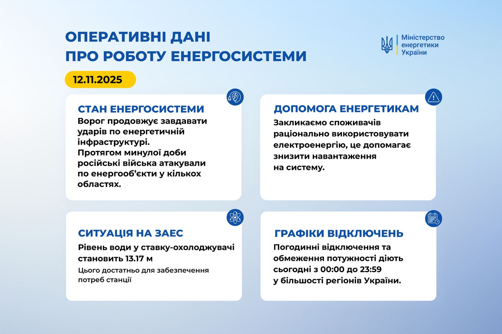 Актуальні графіки розміщуються на офіційних ресурсах регіональних операторів системи розподілу. Про зміни в енергопостачанні дізнавайтесь на сторінках обленерго вашого регіону.