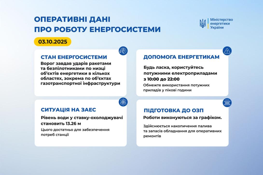Станом на 3 жовтня в окремих регіонах діють обмеження споживання електроенергії.