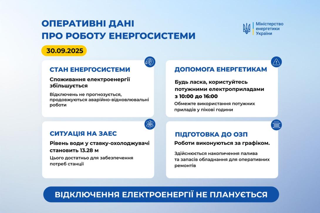 Станом на 30 вересня система збалансована, планових обмежень для споживачів не передбачено.