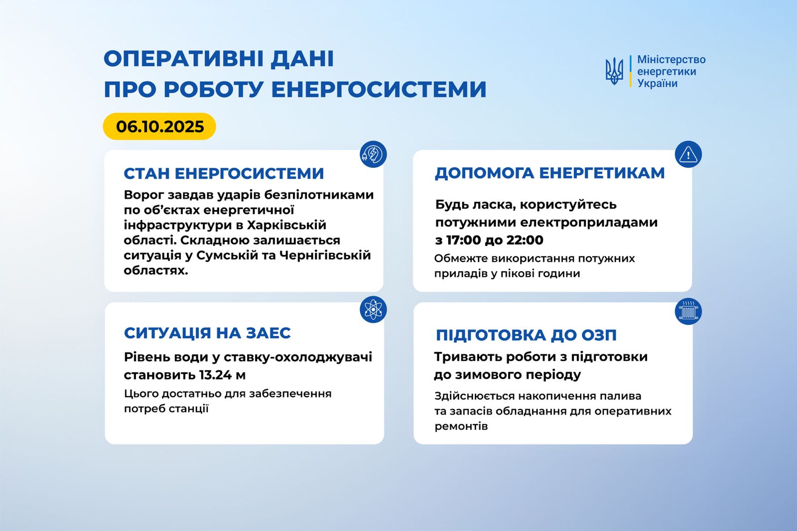 Станом на 6 жовтня на Чернігівщині діють обмеження споживання електроенергії.