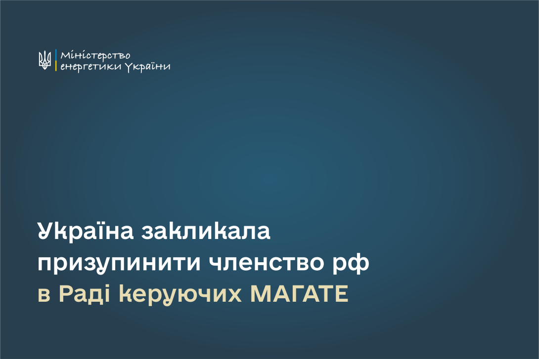 Україна порушила питання призупинення членства росії в Раді керуючих МАГАТЕ. Про це повідомив Перший віцепрем’єр-міністр України – Міністр енергетики за підсумками позачергового засідання Ради керуючих МАГАТЕ, яке скликали на запит України.