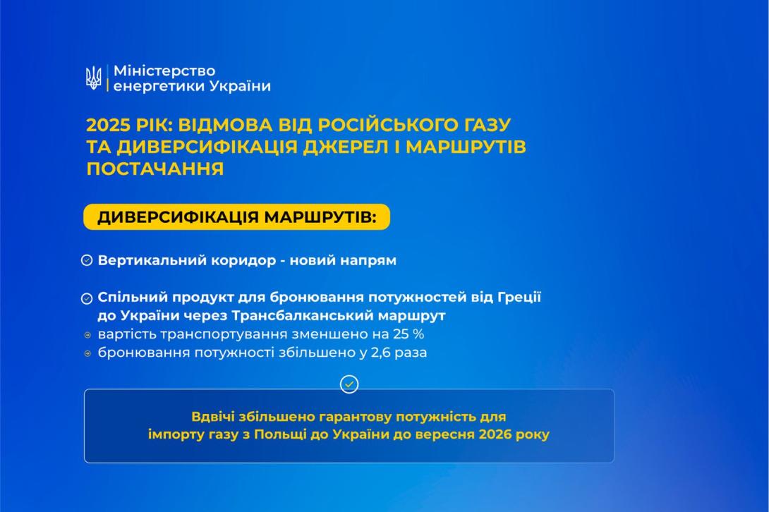 Зокрема, у 2025 році Україна разом з сусідами запустила новий маршрут для імпорту газу з півдня - Вертикальний коридор. Особливо важливий напрямок у контексті безпеки постачання та є альтернативою східному шляху.