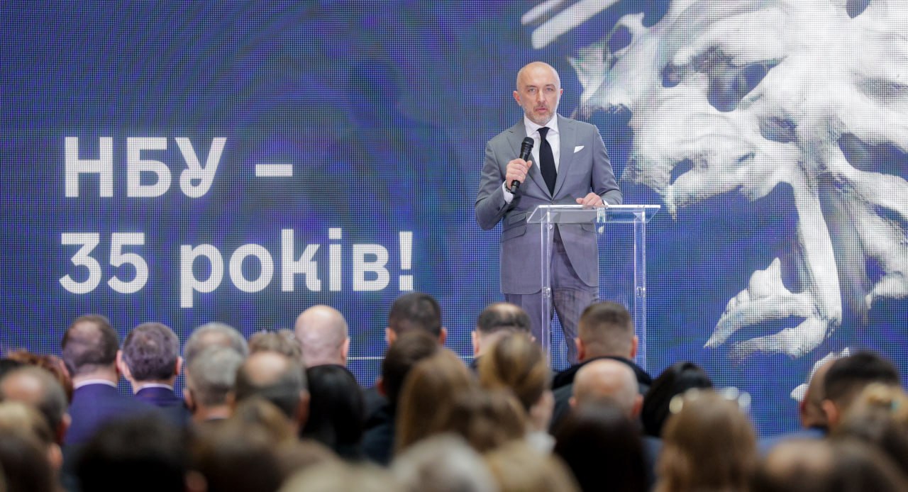 Денис Шмигаль привітав працівників та управлінців НБУ з ювілеєм і побажав кожному члену колективу сил, енергії та оптимізму для професійної ефективної роботи.