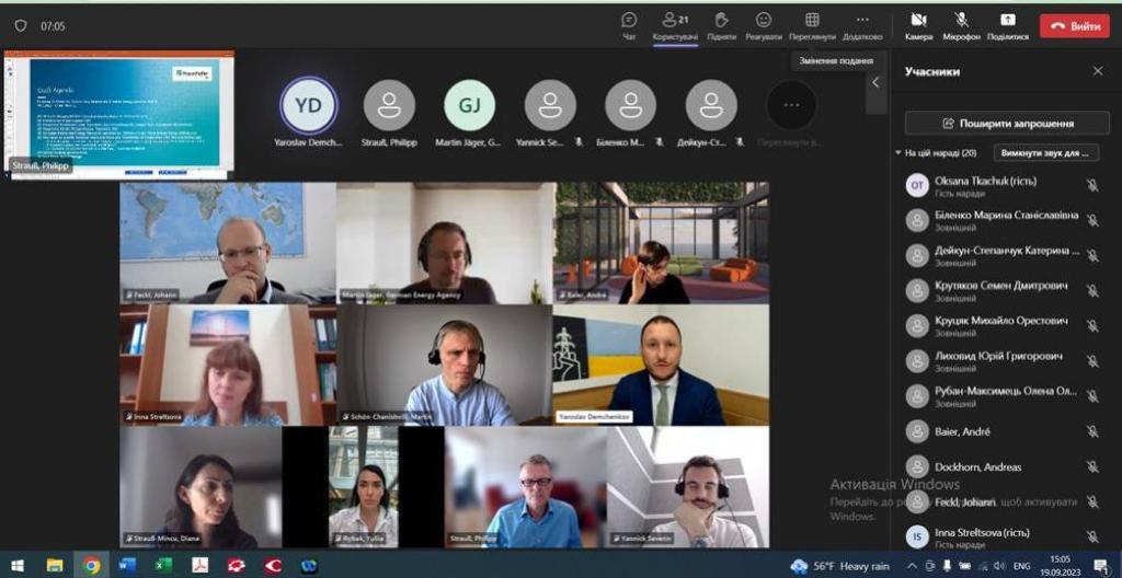 Заступник міністра енергетики України Ярослав Демченков провів робочу зустріч із представниками інститутів Німецького наукового товариства імені Фраунгофера та think tanks, зокрема з Інститутом економіки енергетики та технології енергетичних систем ім. Фраунгофера (ІЕЕ), німецьким енергетичним агентством DENA, а також обʼєднанням DERlab. Темами обговорення були ключові потреби та пріоритети енергосектору та підготовка проєктів до програми фінансування Fraunhofer Zukunftsstiftung «Відбудова України».