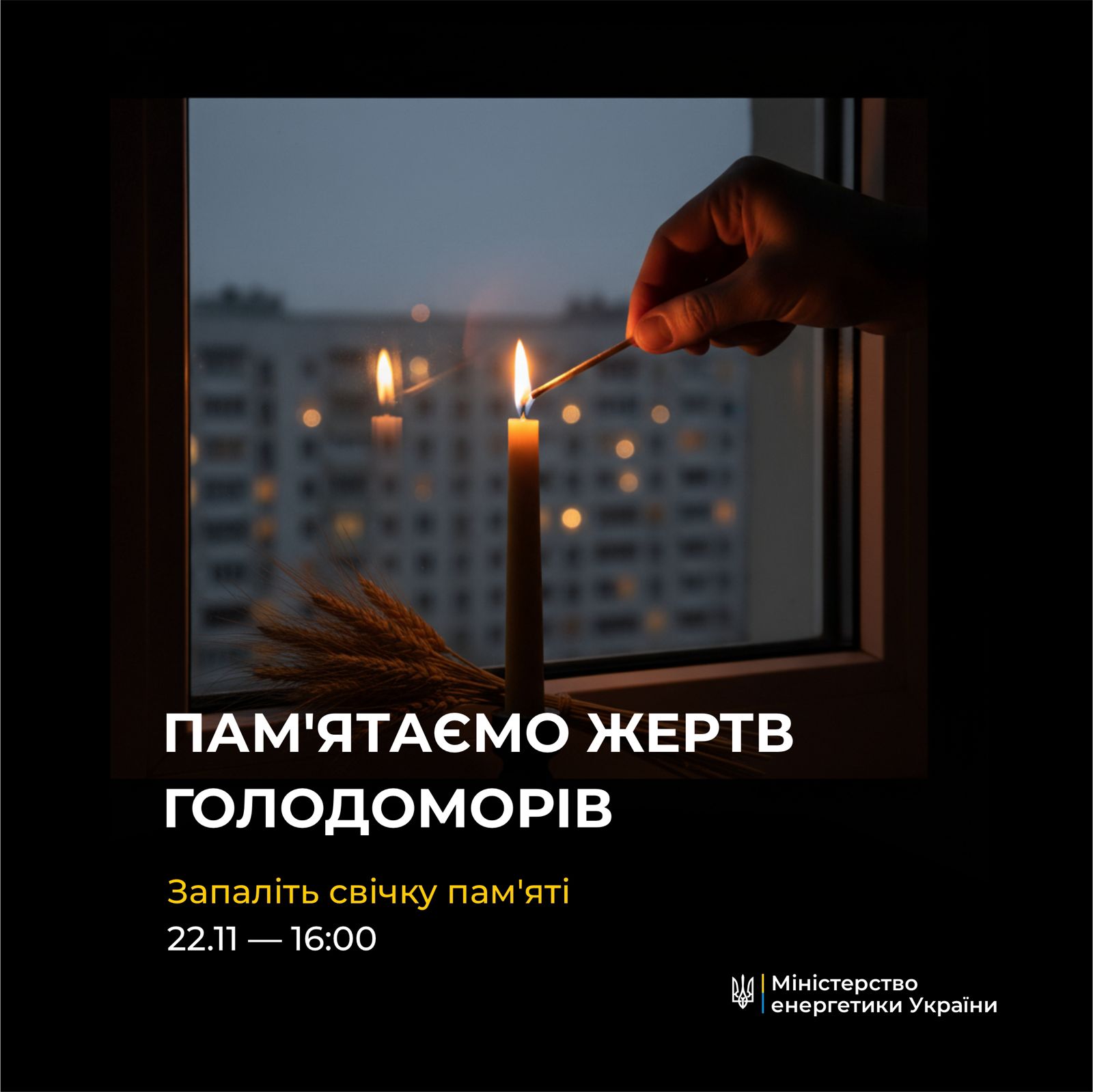 Попри ці удари, у вікнах українців буде горіти світло пам’яті. Енергетики цілодобово працюють, відновлюючи мережі після атак, аби навіть у найскладніші моменти українці мали можливість запалити свою свічку, бо пам’ять не згасає. Її не здолати ні терором, ні темрявою.