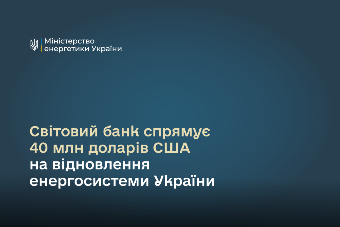 Як повідомив Денис Шмигаль на своїй сторінці у соцмережі X, Світовий банк планує спрямувати до 40 млн доларів США для НЕК «Укренерго» на закупівлю критично важливого обладнання, необхідного для відновлення енергосистеми.