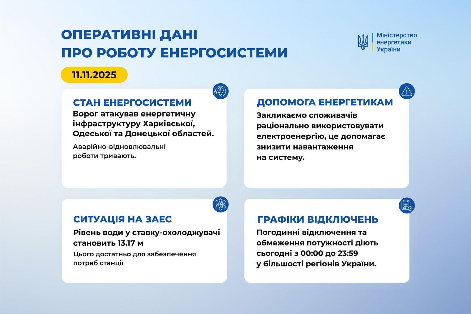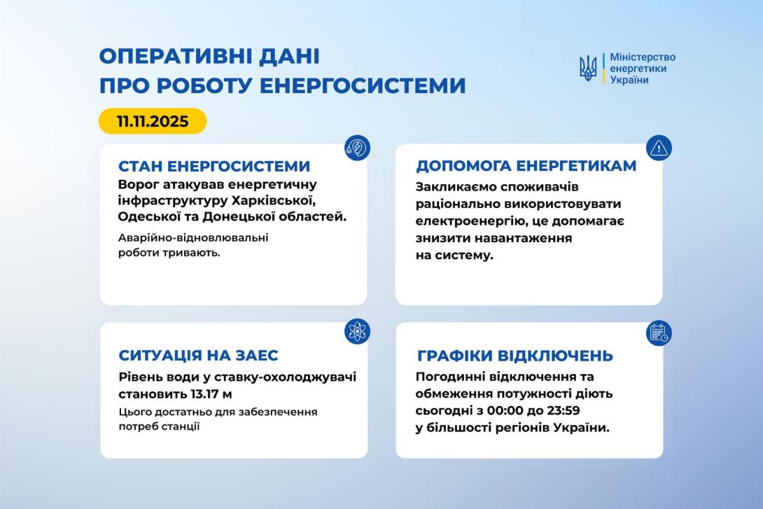 Ворог атакував енергетичну інфраструктуру Харківської, Одеської та Донецької областей. На пошкоджених об’єктах енергетичної інфраструктури тривають ремонтно-відновлювальні роботи.
