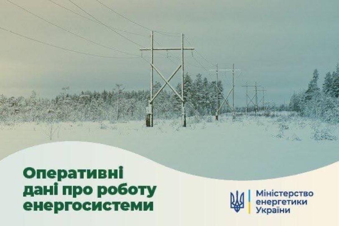 На поточну добу прогнозується імпорт електроенергії – 7896 МВт*год. Також передбачається експорт – 1318 МВ*год (до Польщі, Румунії, Словаччини, Молдови).