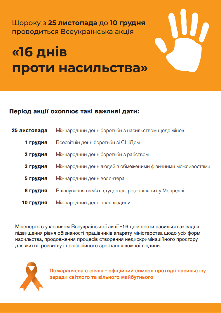 Всеукраїнська акція «16 днів проти насильства» з 25 листопада до 10 грудня 2025 року